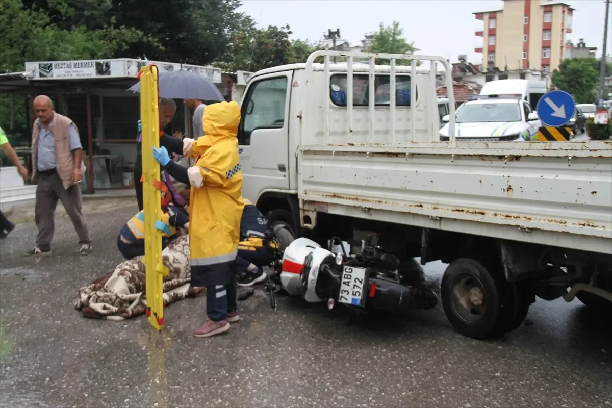 Akçaalan Mahallesi Tuzlaburun Caddesi’nde S.Y. yönetimindeki 07 YG 299 plakalı kamyonet ile Davut E. nin kullandığı 73 ABG 572 plakalı motosiklet çarpıştı. Kazada motosiklet şoförü Davut E. yaralandı.
